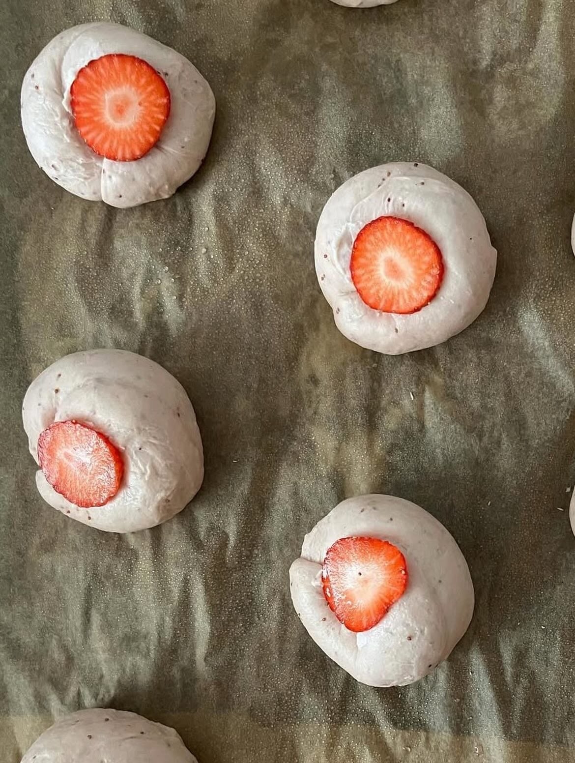 # 天然酵母蒸焼きベーグル 苺大福 卵・乳不使用