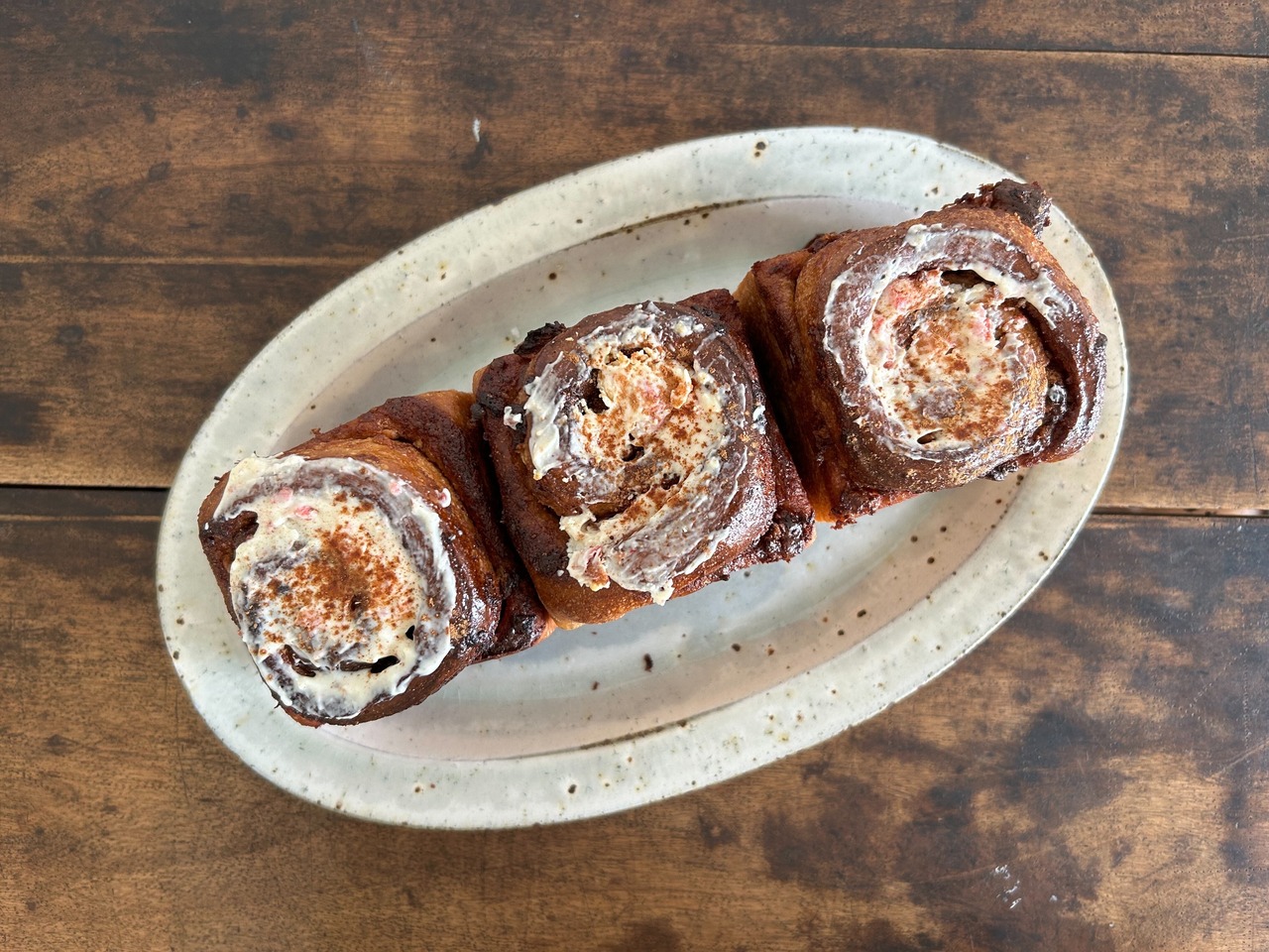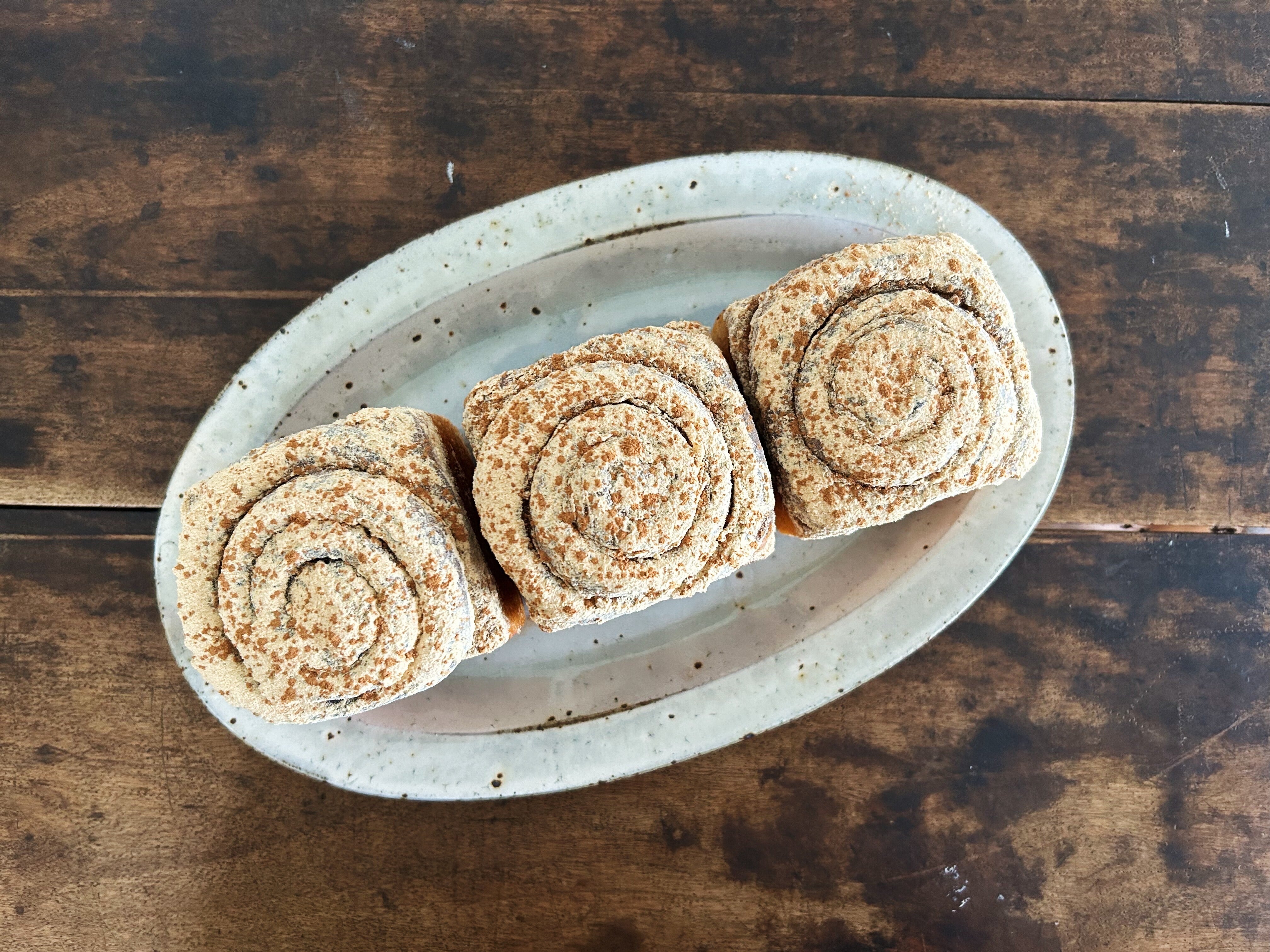 長時間低温発酵で焼き上げたどっしりとした自家製天然酵母シナモンロールです。